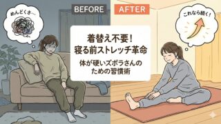 体が硬くてストレッチが続かないあなたへ。着替え不要のリカバリーウェア「BAKUNE」なら、寝る前の柔軟が習慣化できます!薄いのに温かく、動きやすいからズボラさんでも大丈夫。実際に着用して感じた効果やメリットを、体が硬い筆者が本音レビューします。