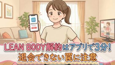 【画像解説】LEAN BODYは解約できない?アプリで3分で完了する退会手順を完全ガイド。更新日を過ぎると損する「返金なし」の罠と、絶対に押すべきボタンの場所を教えます。登録前に読んで「解約忘れ」のリスクをゼロにしましょう。