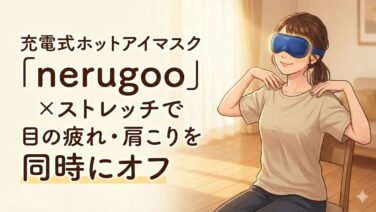 デスクワークで目も体もバキバキ…そんな時におすすめなのが、コードレスホットアイマスク「nerugoo」とストレッチの合わせ技です。スマホを強制的に断ち、目を温めながら体をほぐす極上のリセット術を紹介します。寝たままでOK、たった4000円でできる最高の癒やし習慣です。