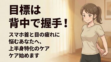 目標は背中で握手!スマホ首と目の疲れに悩むあなたへ、上半身特化のケア始めます